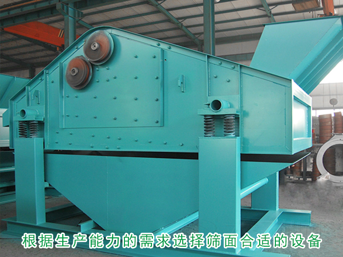 根據(jù)生產(chǎn)能力的需求,選擇篩面合適的礦用振動(dòng)篩分機(jī)。比如處理量為10-100t/h,應(yīng)該選擇0.9平方的篩面;處理量為15-160t/h應(yīng)選擇1.62平方左右的礦用振動(dòng)篩分機(jī)。