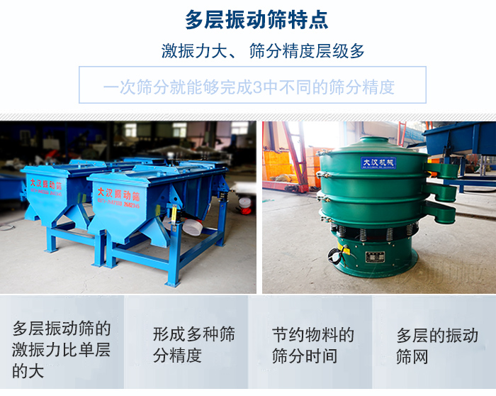 多層振動(dòng)篩可對粉狀、顆粒狀物料的篩選和分級,廣泛用在塑料、磨料、化工、醫(yī)藥、建材、糧食、炭素、化肥等行業(yè).