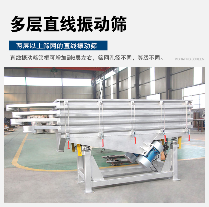 多層直線振動(dòng)篩是指:兩層以上篩網(wǎng)的直線振動(dòng)篩,直線振動(dòng)篩篩框可增加到6層左右,每層的篩網(wǎng)孔徑不同,所篩出的東西就會(huì)有不同等級,因此多層的直線振動(dòng)多使用到一些有特殊要求的行業(yè)中。