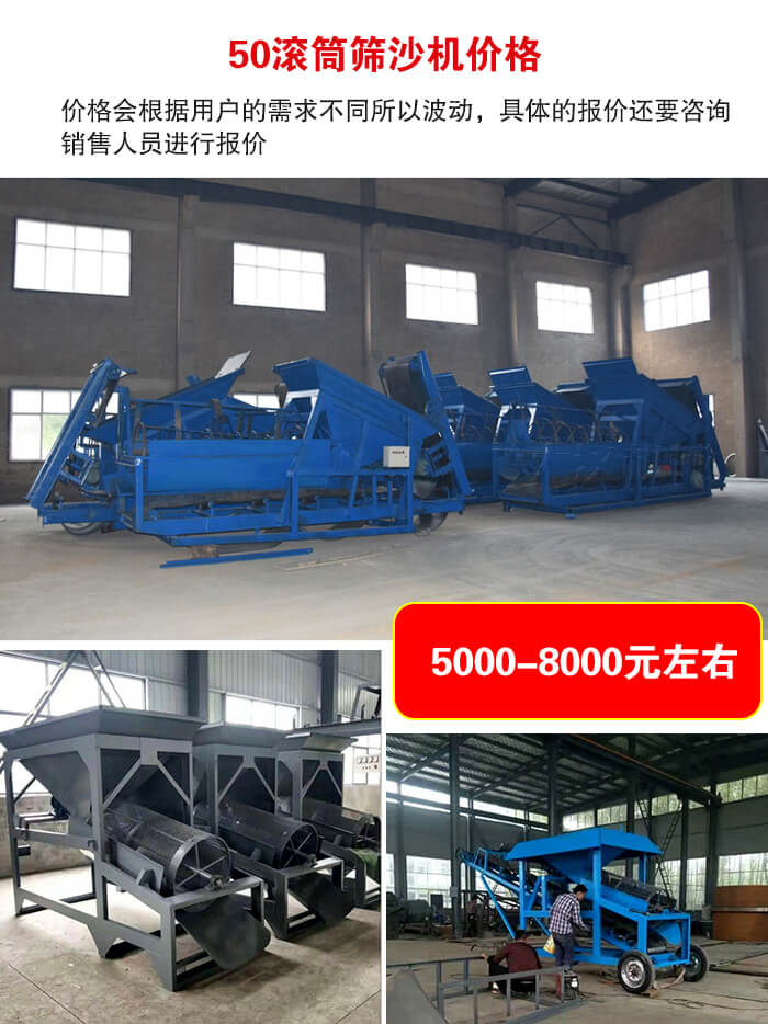 1,50滾筒篩沙機可進行定制改造服務例如:配有給料機,皮帶輸送機等設備,所以價格會根據用戶的需求不同所以波動,具體的報價還要咨詢銷售人員進行報價。